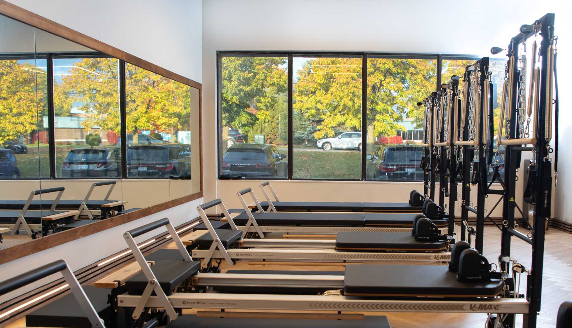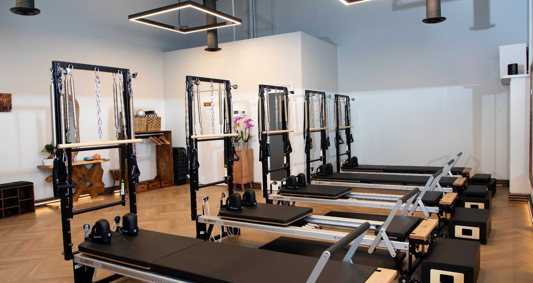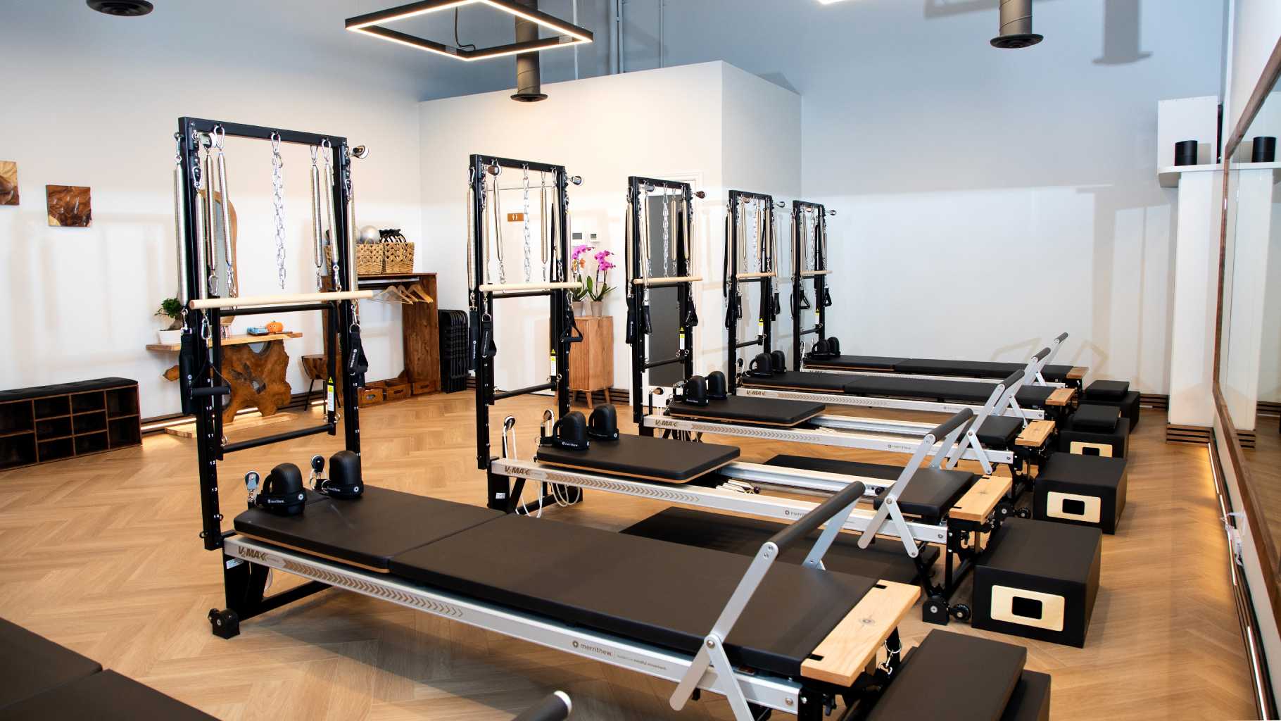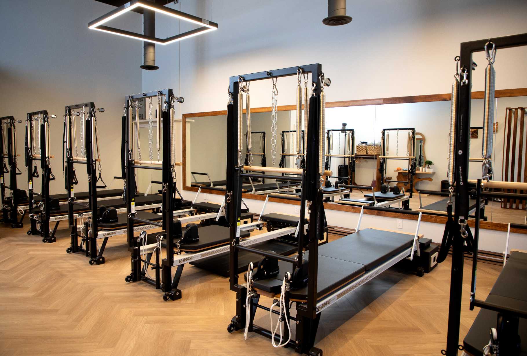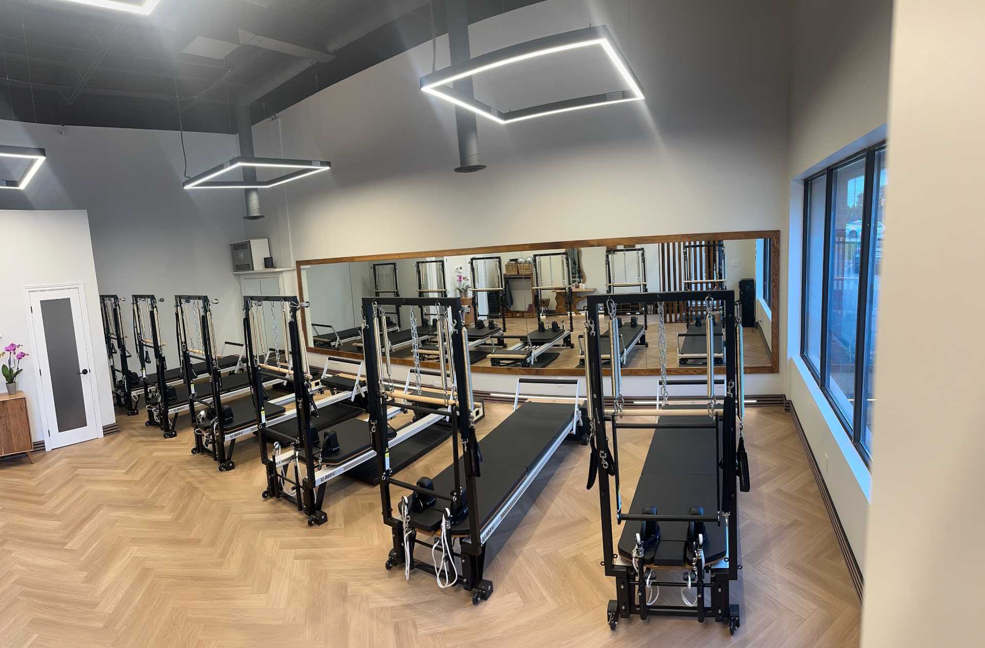 Our studio design features a calming wood theme with modern Pilates equipment for the ultimate mind-body experience. Stay tuned for sneak peeks of our renovation and equipment installation!